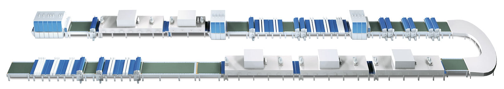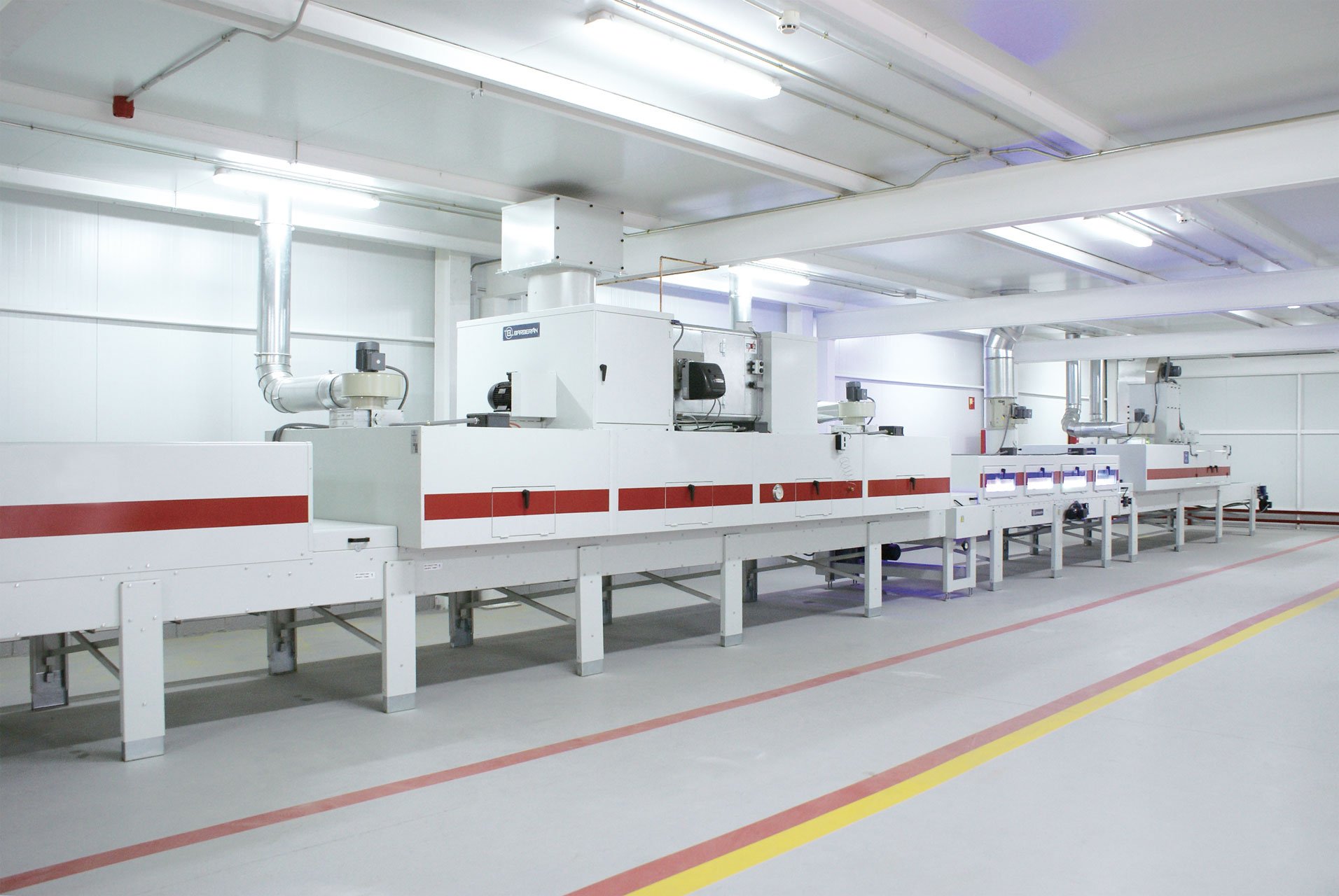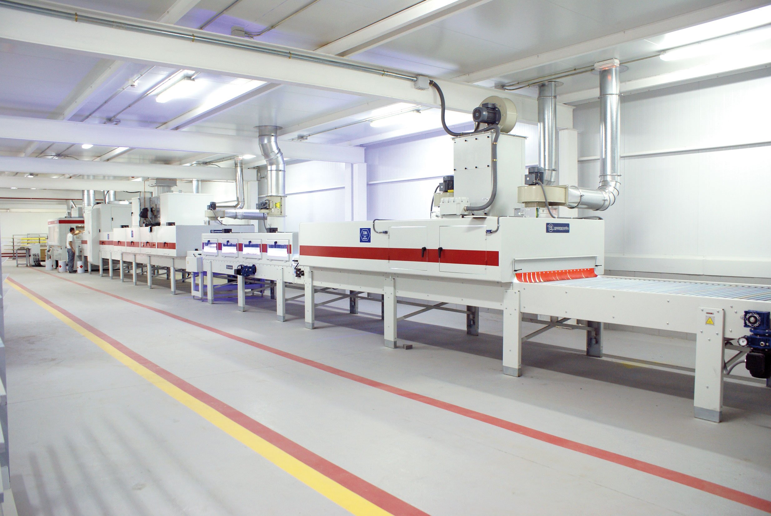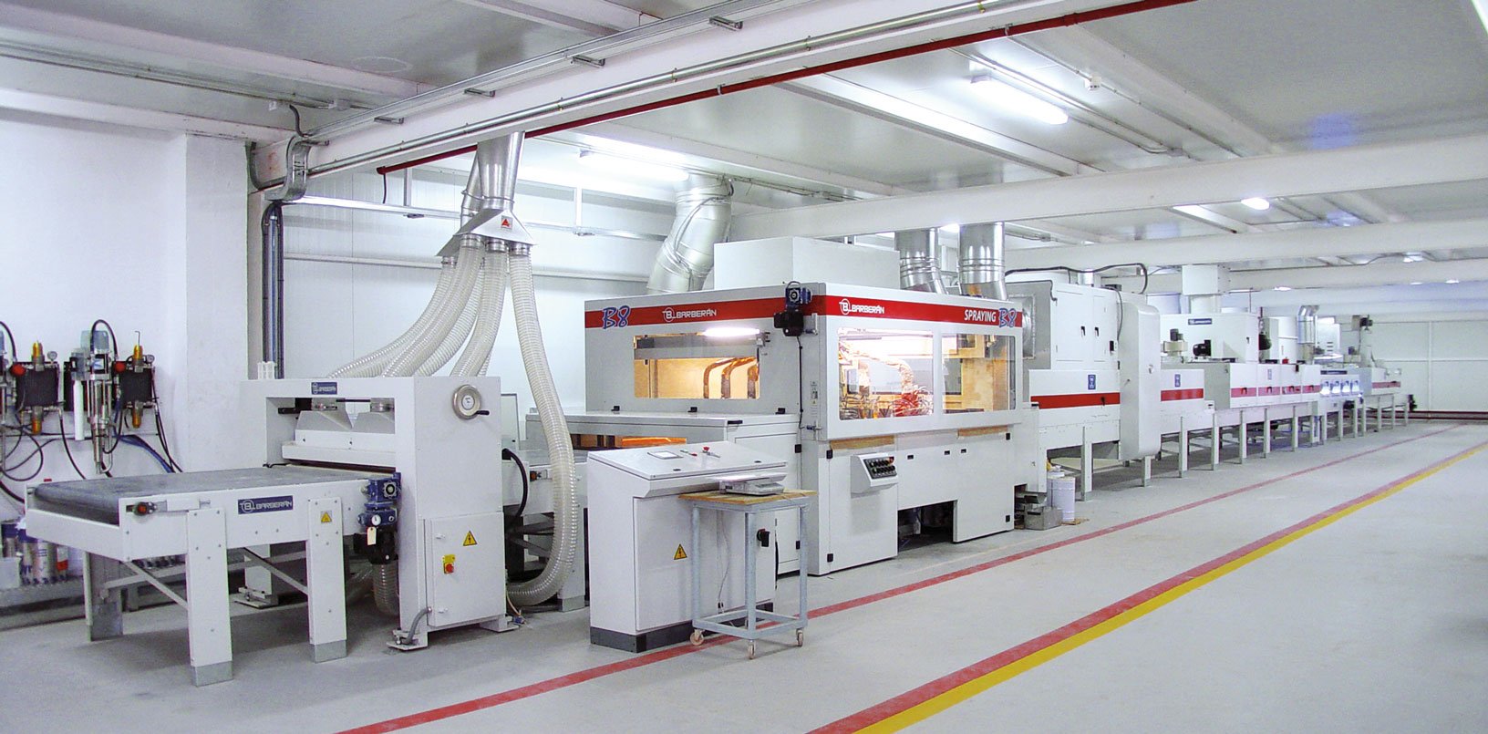 Täydelliset pintakäsittelylinjat mm. puupohjaisille tuotteille, lasille ja muoville erilaisine levitys- ja kuivauslaitteineen ja kuljettimineen sekä hiomakoneet integroituna linjaan.