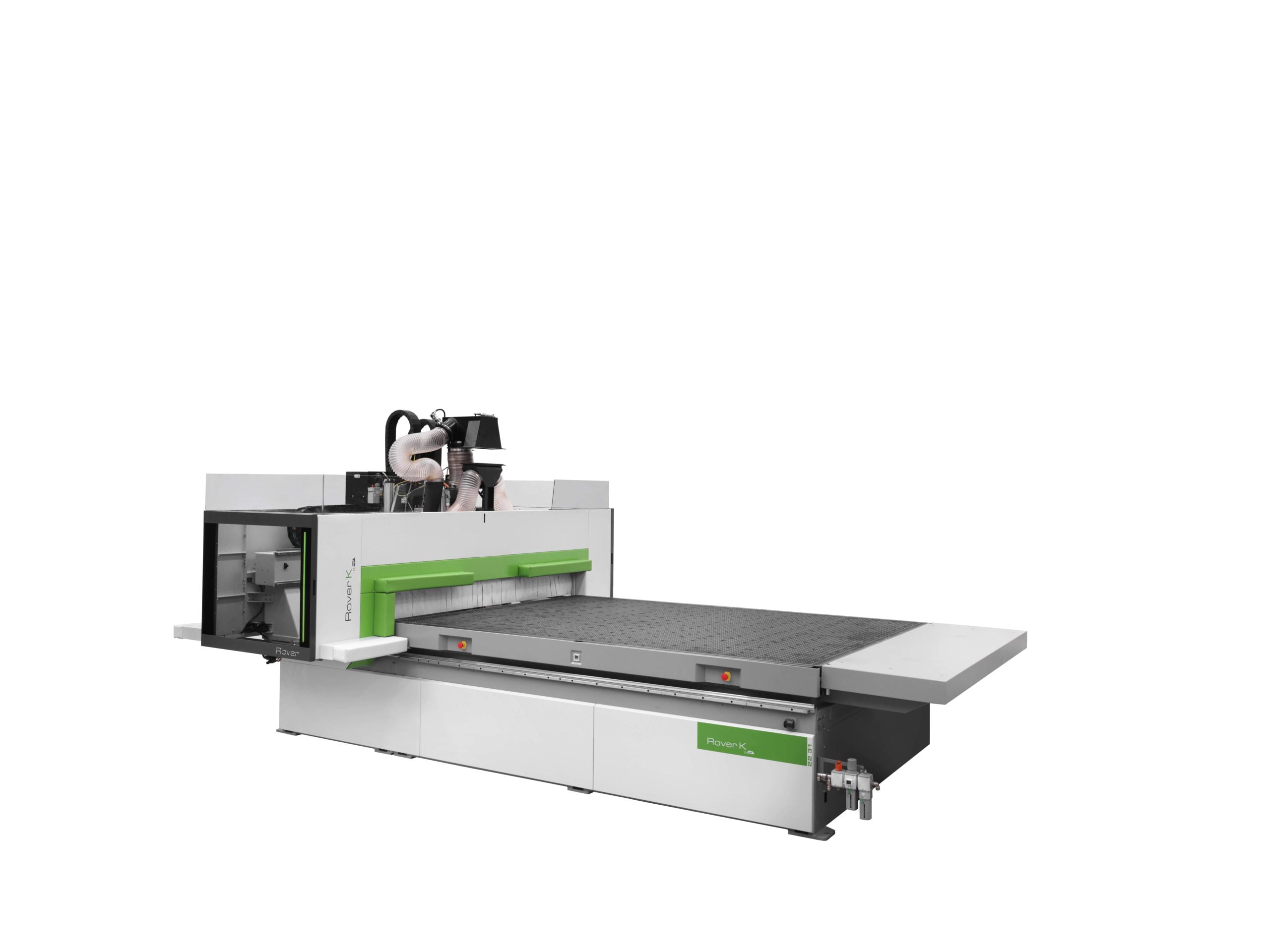 Biesse Rover K FT -työstökeskus portaalirakenteella – markkinoiden kompaktein – suunniteltu puupohjaisten levytuotteiden koneistukseen (jyrsintä ja poraus). Rover K FT on Biessen lähtötaso rasteripöytäisissä koneissa, täyttäen kuitenkin useimmat asiakastarpeet.