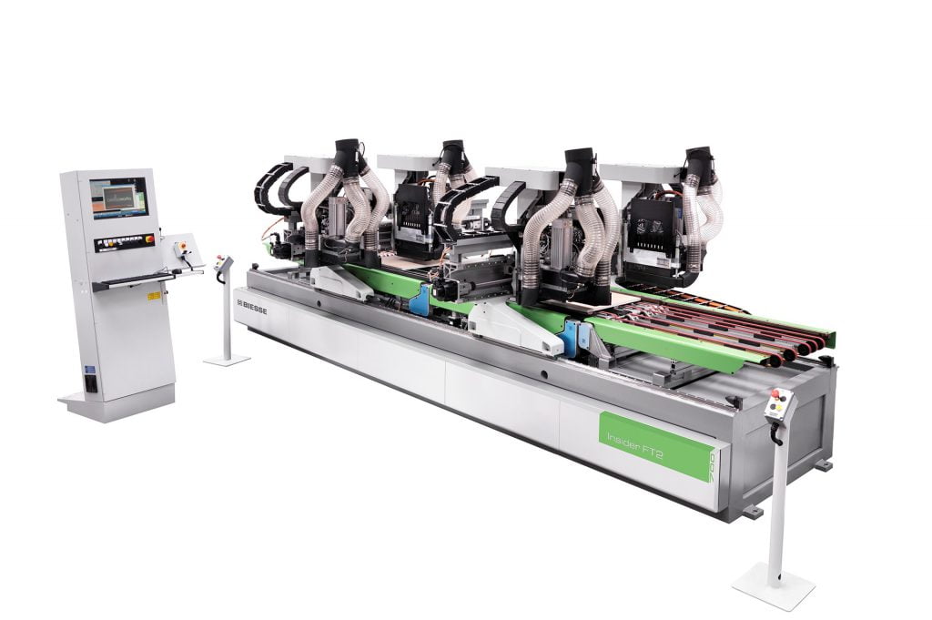 Biesse Insider FT2 on pitkittäin läpisyöttävä porausautomaatti kahdella työalueella ja neljällä porayksiköllä. Tehokas läpisyöttävä porausautomaatti erilliskappaleiden ja sarjojen porauksiin sekä jyrsintöihin. Kahden portaalin ansiosta koneen kapasiteetti on jopa 2 200 kpl/vuoro.
