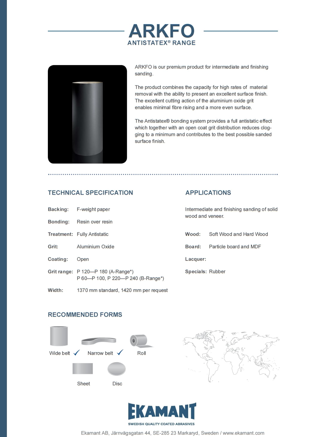 EKAMANT ARKFO -hiomanauha on erinomainen valinta, kun tavoitellaan laatua sekä väli- että viimeistelyhionnassa. Sillä voidaan hoitaa kaksi kärpästä yhdellä iskulla: materiaalia saadaan hiottua pois kiitettävästi ilman, että pinnanlaatu kärsii. Lisäksi alumiinioksidijyvän mainio purevuus estää liiallisen tikkujen nousemisen ja täten mahdollistaa myös tasaisemman pinnanlaadun. Soveltuu pehmeille ja koville puulajeille sekä lastu- ja MDF-levylle.