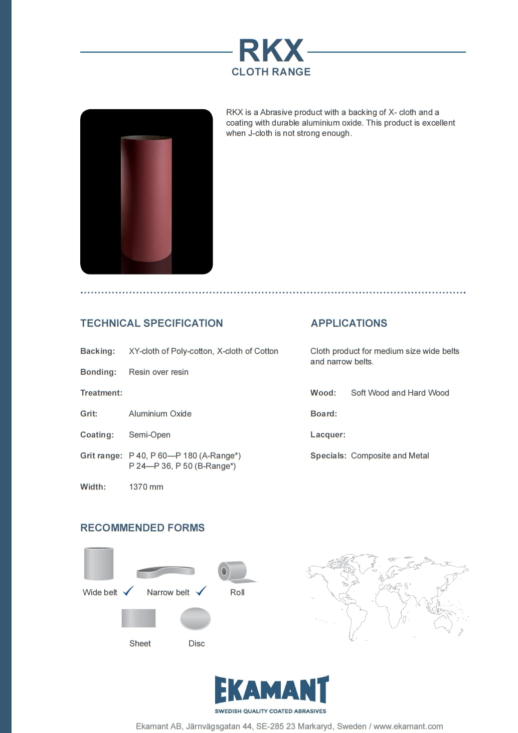 EKAMANT RKX -hiomanauha on todella kestävä kangasnauha, joka on suunniteltu pääsääntöisesti materiaalin poistoon. Se soveltuu sekä koville että pehmeille puulajeille, mutta myös teräksen ja komposiittien hiontaan. RKX on oiva valinta, mikäli J-kangas ei ole tarpeeksi vahva vaihtoehto.