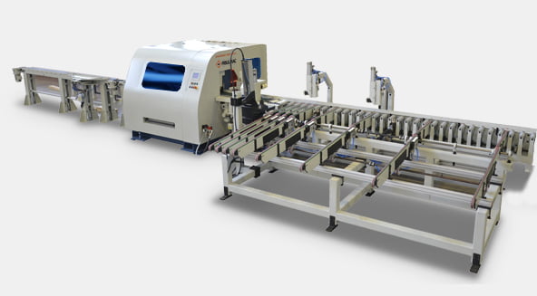 Huipputehokas tapituskone Ikkuna – ja oviteollisuuden tarpeisiin. Kappaleet syötetään koneen läpi pituusakselin suuntaisesti, jolloin jokainen kappale tai kappalepari voi olla eri pituinen. Kone voi toimia osana tuotantolinjaa tai yksittäisenä koneena syöttö- ja vastaanolaitteilla varustettuna.