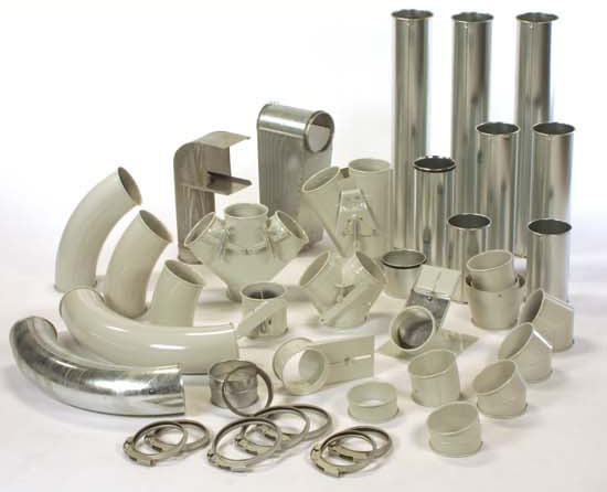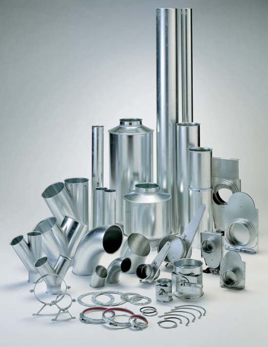 Valmistusmateriaalina putkistokomponenteissa on 0,75-1,25 mm galvanoitu teräs.