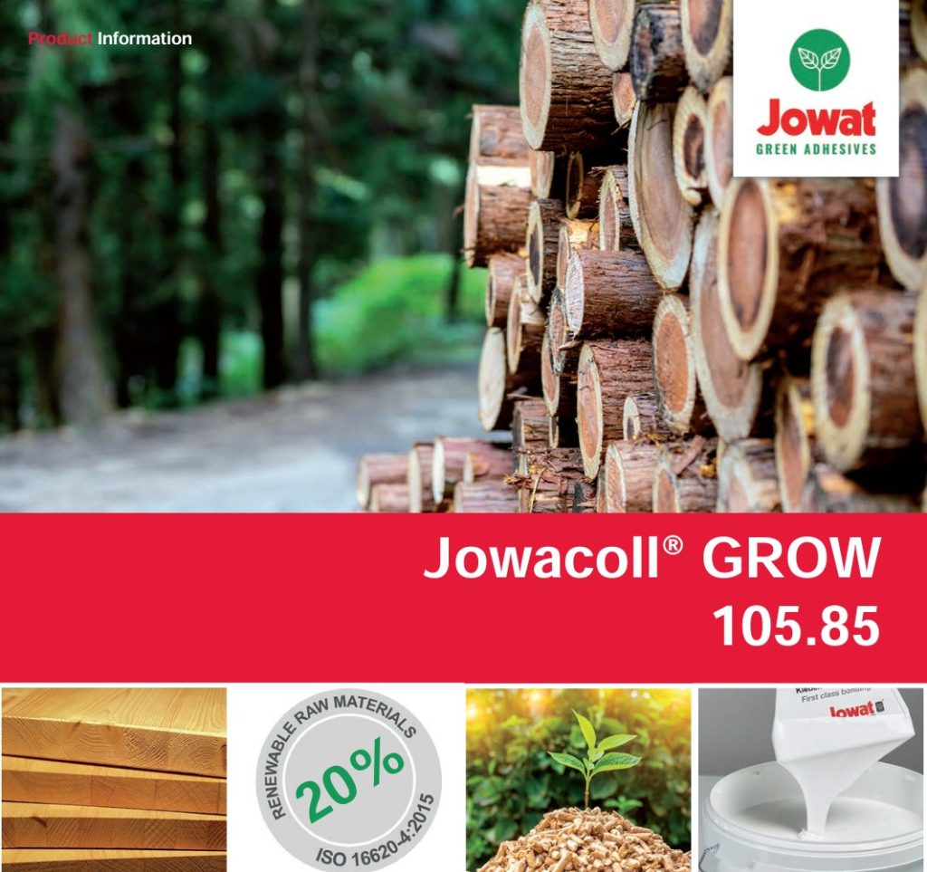 Jowat Jowacoll GROW 105.85 on biopohjainen dispersioliima massiivipuun liimaukseen tai puupohjaisten levyjen laminointiin.