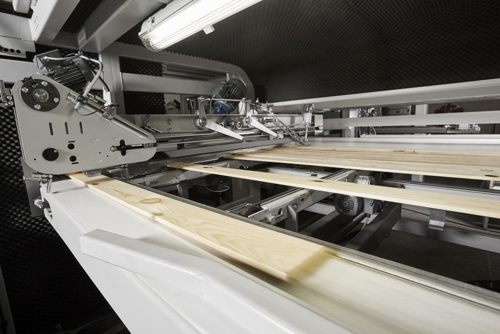 Q -suurtaajuuspuristin on erittäin nopea puristin massiivipuulevyjen valmistukseen. Kun levy lähtee puristimesta, on liima kuivunut ja levy valmis jatkokäsittelyyn ilman välivarastointia.