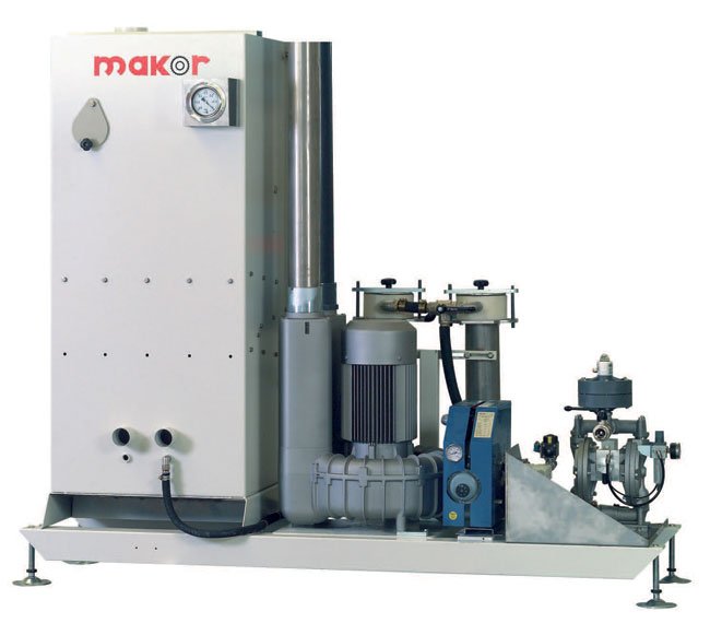 MAKOR CYCLONE – alipainelevitin automaattisesti pumppaa ainesäiliöstä ainetta levityskammioon, jossa kappale käsitellään halutulta alueeltaan. Levitysmäärän säätö tapahtuu syöttönopeutta ja/tai alipaineen määrää säätämällä. Levityspäässä on kappaleille omat suulakkeet ja erikoissuulakkeilla voidaan levittää aine myös yksittäiskappaleisiin. Tehokkaat suodattimet erottelevat kierrätysmaalista roskat ja kone on tällöin kokoajan ajettavissa (voidaan siis puhdistaa suodattimet ajon aikana). Itse levityskammio ja erotussuodatustila ovat pinnoitettu moplen-materiaalilla, jonka ansiosta pesut ovat helppoja. Laitteen yhteyteen on saatavissa pesuveden suodatusjärjestelmät.