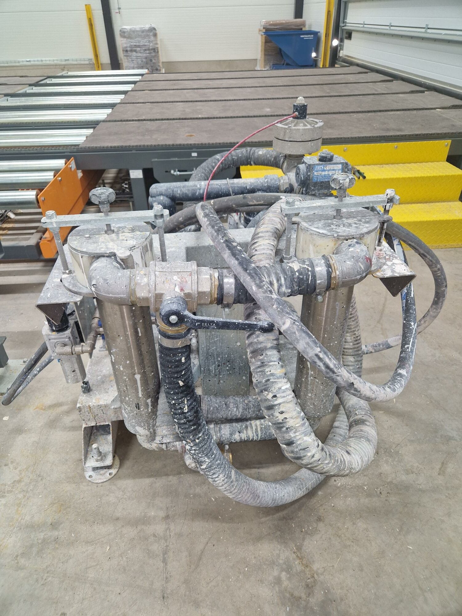 Tarttumattomasta materiaalista valmistettu levityspää on varustettu säädettävällä kappaleiden ohjausjärjestelmällä. Kaikki sisäpuolen osat ovat helposti irrotettavissa nopeaa puhdistusta varten. Suuritehoinen, paineilmatoiminen kaksoiskalvopumppu siirtää maalin säiliöstä levityspäähän; pumppu on varustettu teräksisellä (inox) korisuodattimella sekä laitteella, joka mahdollistaa maalin syötön ja syötön keskeytyksen.