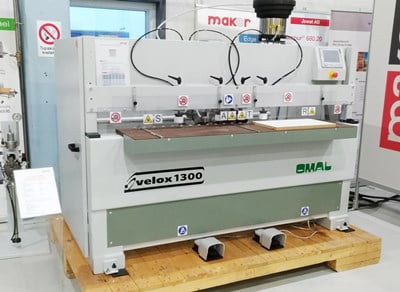 VELOX 1300 CNC -poraus-, liimaus- ja tappien asennuskone. Soveltuu erinomaisesti joustavaan tuotantoon. Käytettävyys helppoa ja nopeaa yksinkertaisen kosketusnäytöllisen käyttöliittymänsä ansiosta.