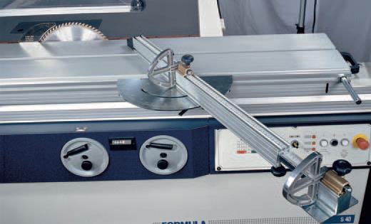 Liukupöydän alumiinisella vasteella varustettu katkaisupöytä mahdollistaa maksimi 3.200 x 3.200 mm levynsahauksen. Teleskooppinen vastetanko on varustettu kahdella stopparilla. Katkaisuvaste voidaan kääntää 0-45 °.