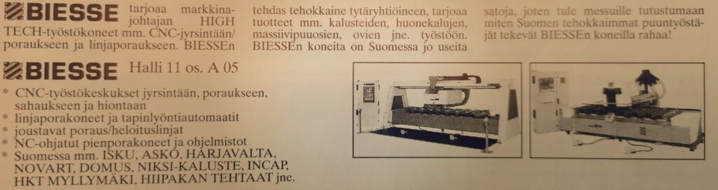 Kumppanuudesta kertoo myös lainaus asiakaslehdestämme vuodelta 1999, Biessen silloiselta aluemyyntipäälliköltä Stefano Turrianilta: ”Meille on tärkeää, että Biessen tuotteita myyvät ammattitaitoiset jälleenmyyjät, jotka pystyvät tarjoamaan hyvän palvelun ja antavat meille nopeaa palautetta asiakkailta. Valitsemme yhteistyökumppaniksemme aina markkinoiden parhaan jälleenmyyjän. Penope on tässä suhteessa paras Suomessa.”